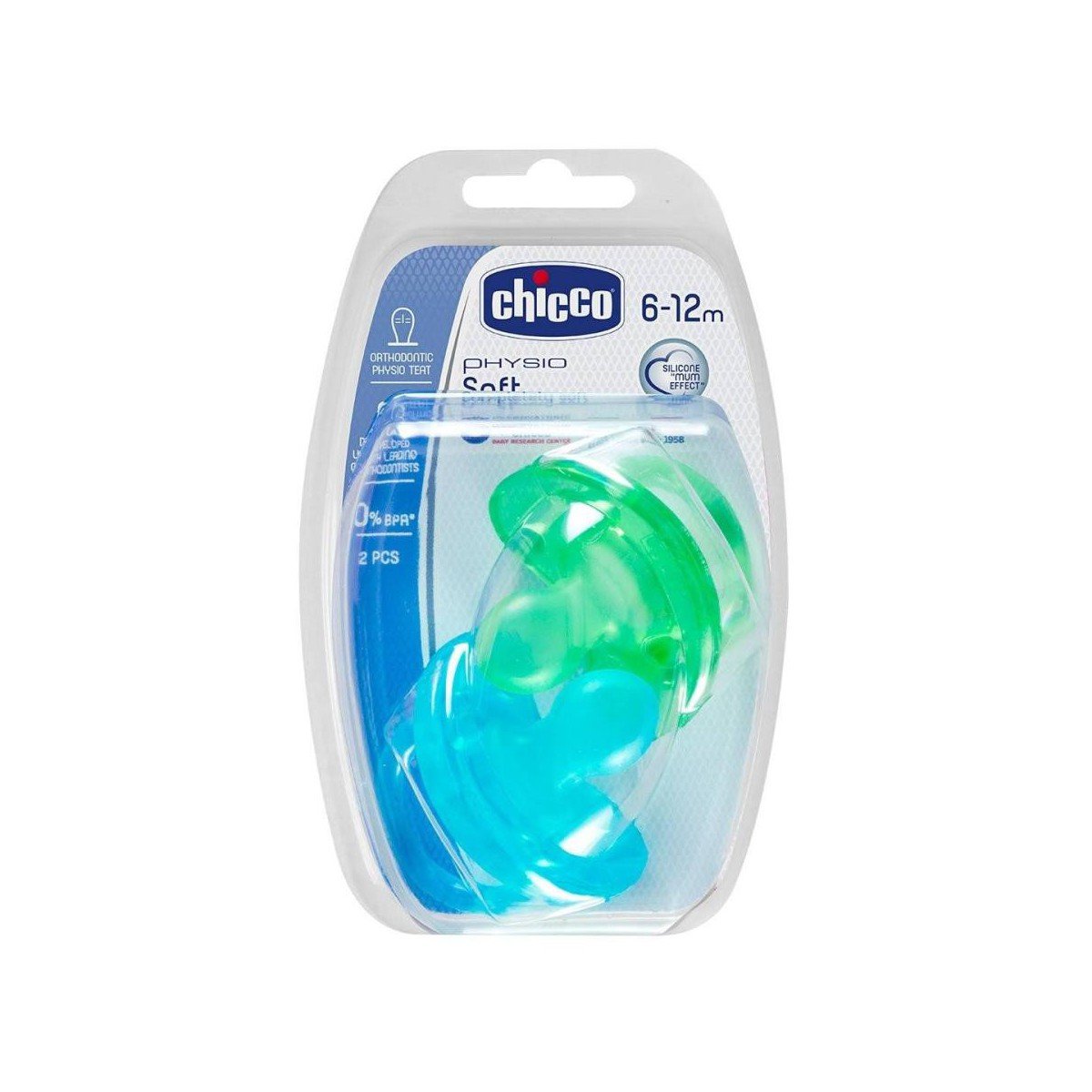 Chicco Chupete Physio Soft Silicona Azul 6-12m 2 Uds