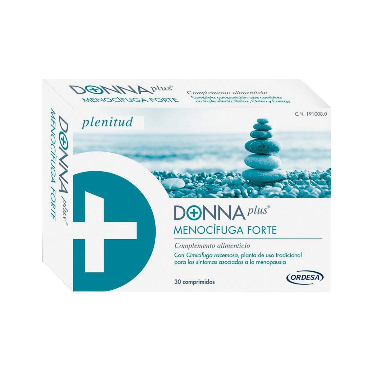 DONNAplus Menocifuga Forte ayuda a contrarrestar y molestias que pueden aparecer durante la menopausia como los sofocos y la sudoración nocturna, problemas para dormir y cambios de humor e irritabilidad. Está compuesta a base de Cimicifuga racemosa, melisa y vitaminas K2, D3, B6, B9 y B12. Estos ingredientes consiguen un triple efecto: